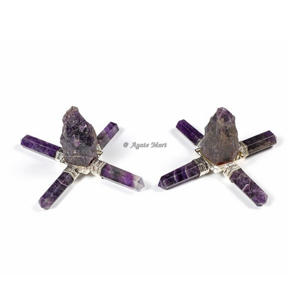 Browse our unique collection of Amethyst four Pencils with Shiva Lingam Healing Energy Generator at Affordable prices. Amethyst four Pencils with Shiva Lingam Healing Energy Generator can place near sunlight at your office desk, living room, or bed-room for healing and reiki balancing. This Generator has 4 Amethyst Pencils attached to an Amethyst Raw at the center. Amethyst is very powerful and protective. Amethyst was used to recover from both physical addictions as well as addictive relationships. Amethyst can encourage inner strength and relieve stress, and is a popular metaphysical stone. Visit Agate Mart and place your order online.
