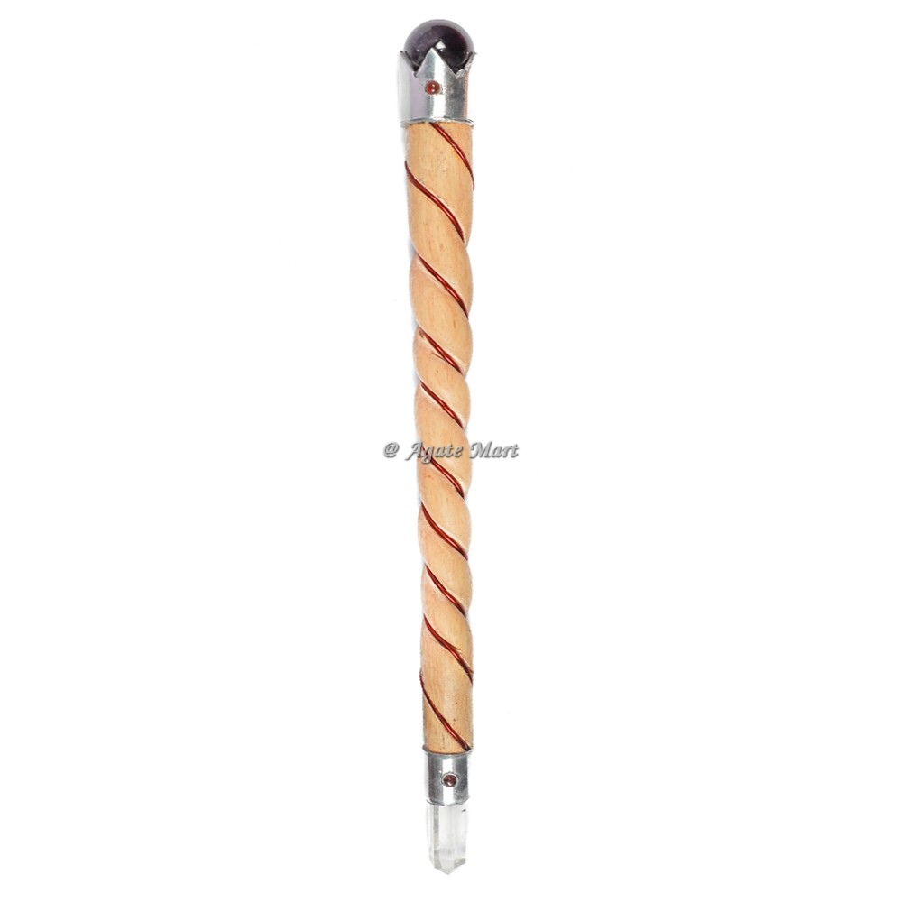 Amethyst with crystal Garnet Wood Healing Stick Wand