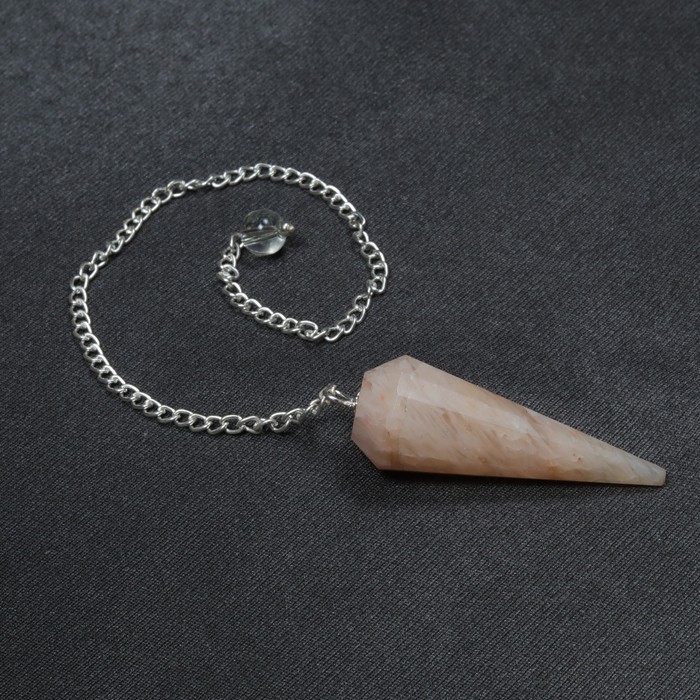 Cream Moonstone 12 Faceted Plain Pendulum assists in the mastery of emotions by bringing them under control of the higher mind. Moonstone bestows depth of feeling and increases inspiration. Pendulums are often used as tools for spiritual healing and inner growth. Pendulum will swing back and forth or in a circular motion. A pendulum works by converting energy back and forth, a bit like a rollercoaster ride. It repeatedly switches its energy back and forth between potential and kinetic. Order online now for Cream Moonstone 12 Faceted Plain Pendulum at wholesale prices from Agate Mart.