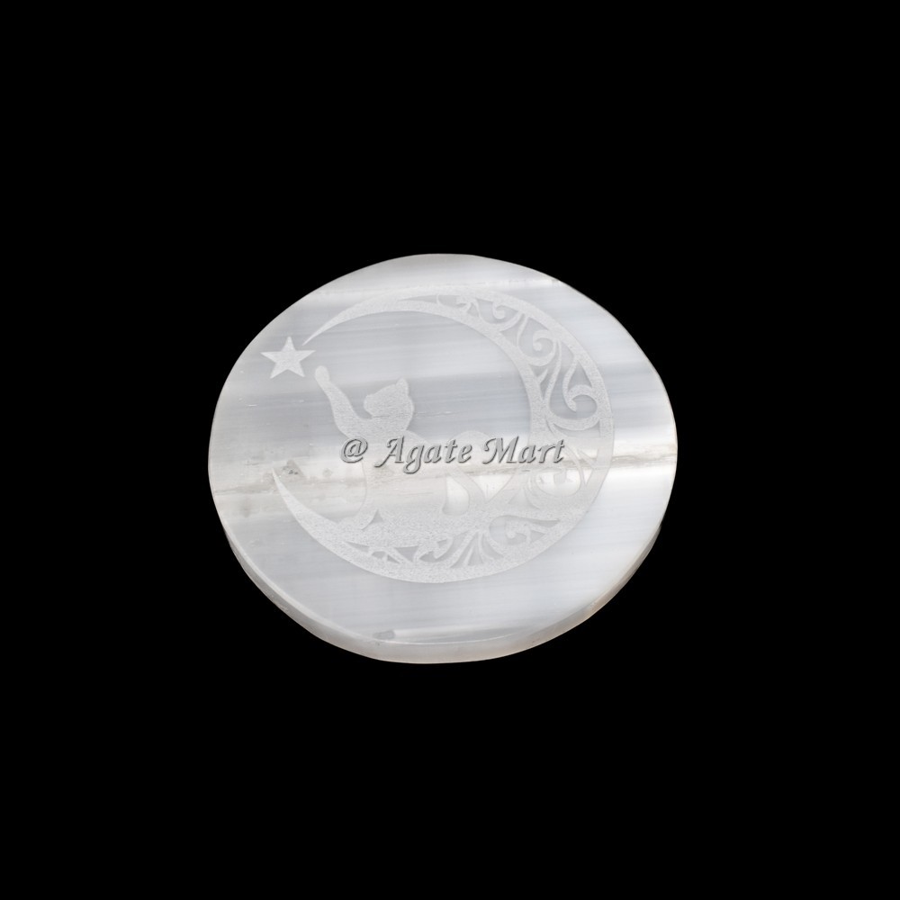 Yantras are usually associated with a particular deity and are used for specific benefits, such as: for meditation; protection from harmful influences; development of particular powers; attraction of wealth or success, etc. Meditating upon the symbols of the yantra will help in the clarity of thoughts and mind. This is a very efficient and effective way of re-focusing on our goals and life. This auspicious and powerful Sri Yantra offers many benefits to the individual. It brings the spiritual as well as material wealth. Selenite is a favorite night time crystal among users for combating insomnia and getting a good night`s sleep. It aptly represents the mindset that a person should have before heading to bed ????????? calm and clear. These Selenite charging disks are beautiful with amazing energy. Book an order for Selenite Yantra Chargin Healing Disk at Agate Mart.