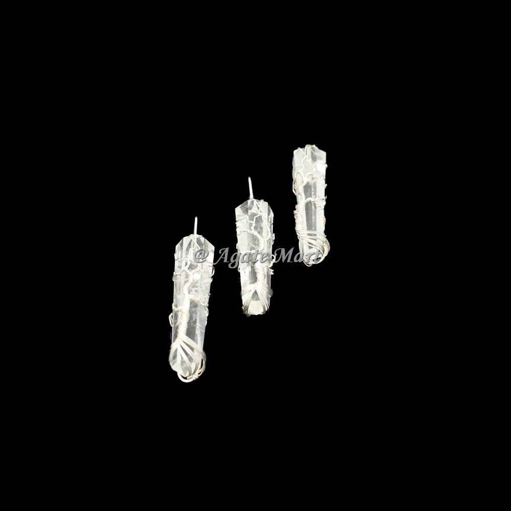 Crystal Quartz Double Terminated Tree Of life Wire Wraped Pendant