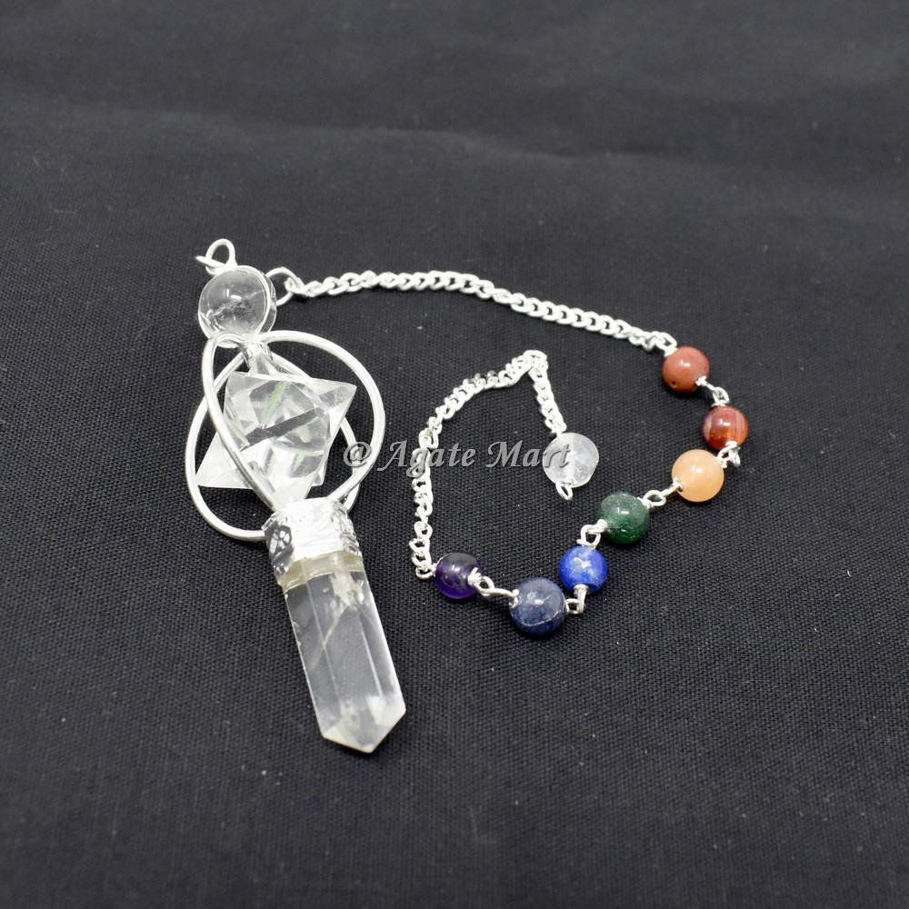 Crystal Quartz Merkaba Star 7 Chakra Pendulum