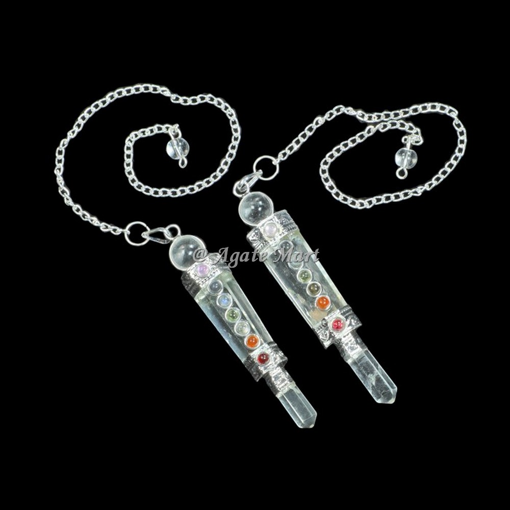 we offers the best collection of Crystal Quartz chakra 3pcs Pendulums at Agate Mart. This pendant protects against negativity. This pendulums are avaiable in wide range and best quality. This is available with best spiritual effects. Order online today.