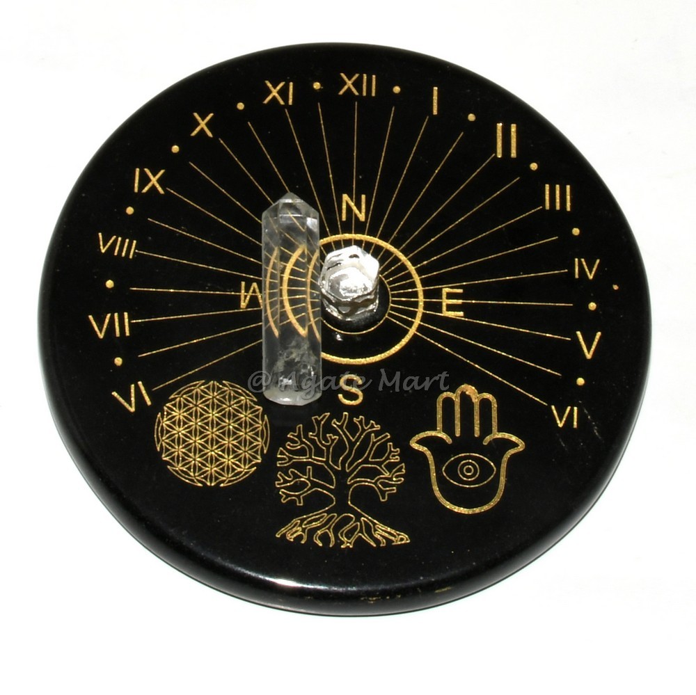 Divine Sun Clock with Engraved Life Symbols And With A Quartz Pencil