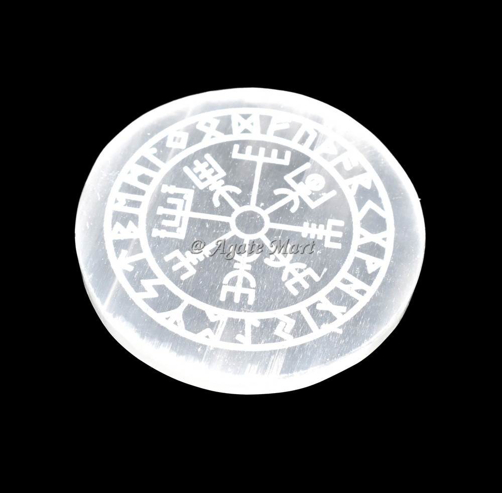 Browse the best collection for Helm Of Awe Engraved Selenite Charging Plate. Selenite evokes protection from the angelic realm, helping to dispel all negative energy from the body and mind. It is known to bring deep peace and mental clarity. This Selenite Charging Plate will magnify the energy of anything that is placed upon them. To cleanse and reactivate your jewelry or crystals, simply place them upon or wrap them around your selenite crystal. Leave them there to charge for a minimum of 6 hours. When you pick up your crystals or put on your jewelry, they will feel much lighter now that all the negative and blocked energy is removed. Order online for Helm Of Awe Engraved Selenite Charging Plate now!