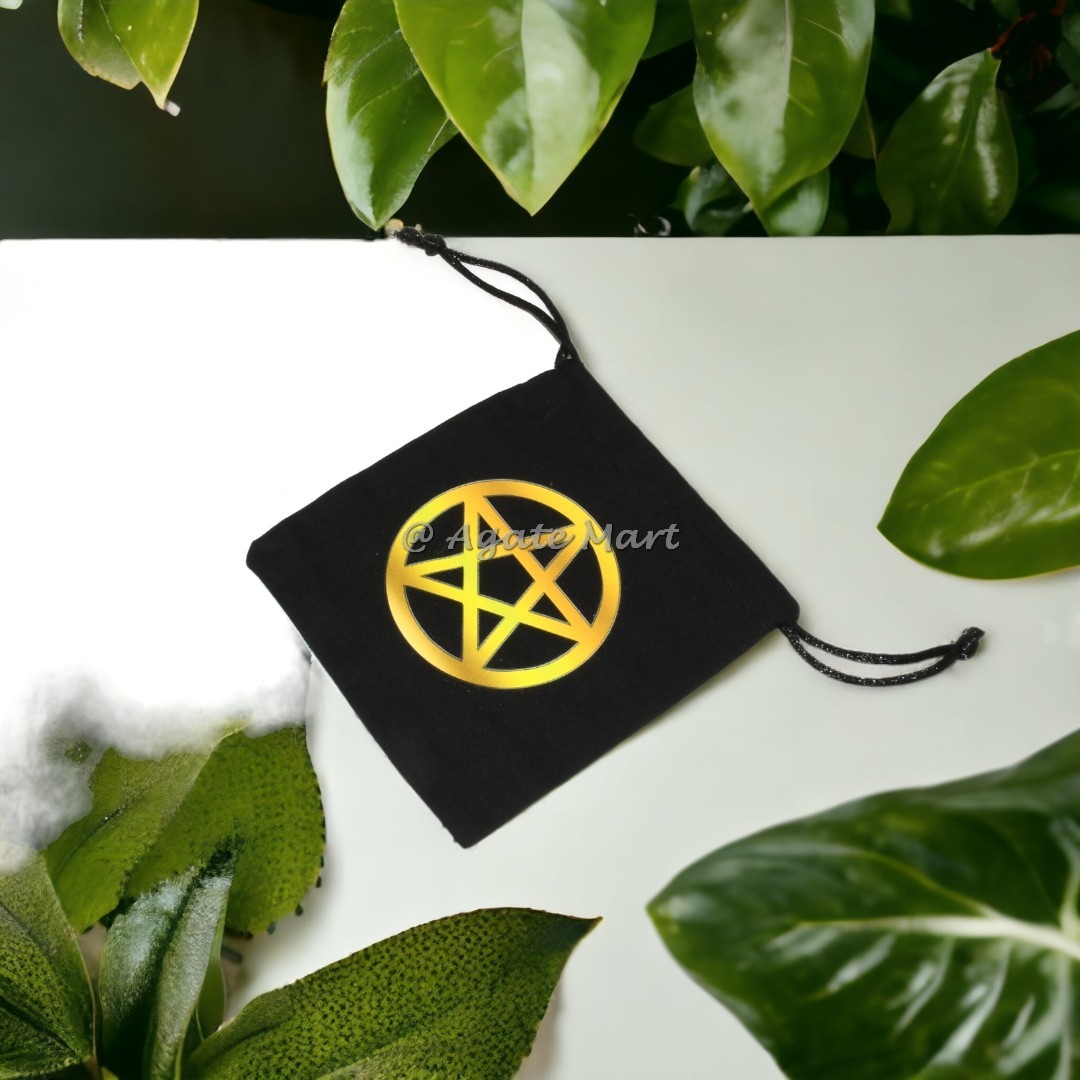 Discover the unique design of our Pentagram Black Cotton Bag, perfect for storing agate stones or other spiritual tools. Crafted with premium quality, this pouch adds a touch of creativity and protection to your spiritual practice. Available in wholesale for exceptional value.