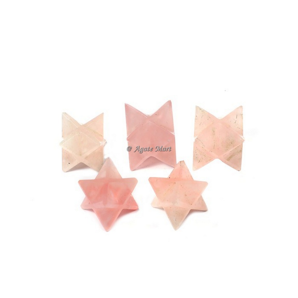 Visit us and get the best Rose Quartz Merkaba Star online.Rose Quartz know as the stone of Love. It connects to heart chakra to be able to give and receive love. Rose quartz is a very happy stone that is calming and reduces stress. It is often used to help to heal emotional wounds. It is used to raise self-esteem and a strong sense of self-worth as well as balance emotions and bring peace and calm. This star can be used for energy work, for meditation, to brighten up the energy in a room, or with energy grids.