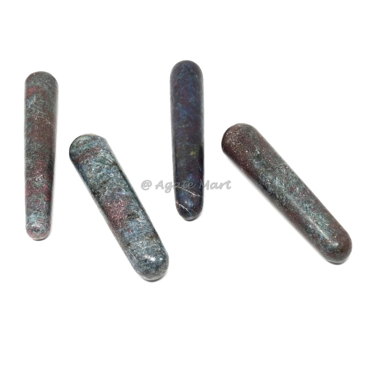 The Ruby in Kyanite Massage Wand combines the strength and vitality of ruby with the calming properties of kyanite. This unique wand is ideal for energy balancing, helping to remove blockages and promote a deep sense of peace. Ruby inspires motivation and confidence, while kyanite encourages mental clarity, making it a powerful tool for those seeking to balance their chakras and enhance meditation. Perfect for deep tissue massage, this wand can also help improve blood circulation and boost overall wellness.