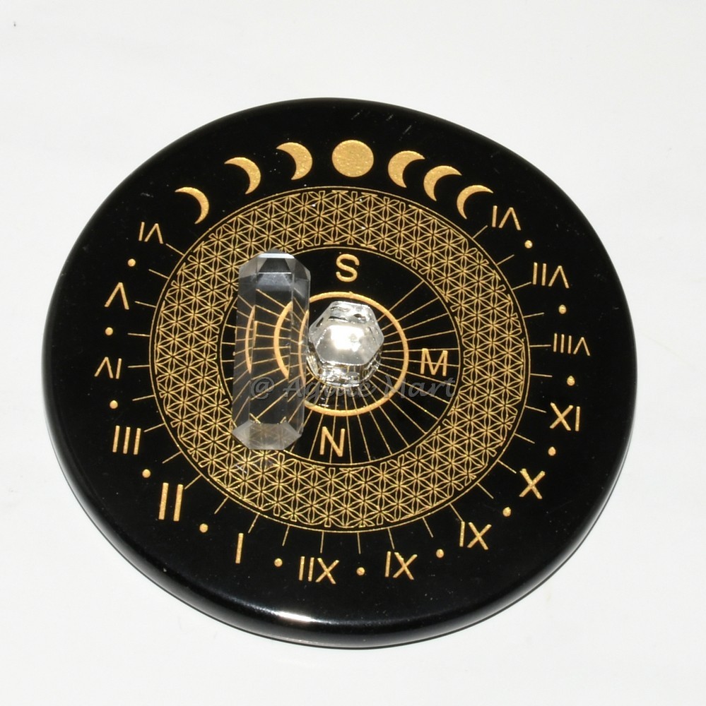 Sacred Sun Clock with Flower of Life and Moon Phases engravings is a symbol of sacred geometry, offering spiritual depth and aesthetic appeal. Paired with a crystal quartz pencil, it?s designed for those who appreciate the intricate balance of life and the cosmos. A perfect centrepiece for meditation spaces or spiritual decor. Shop Now From Agate Mart For The Best Quality Of Sun Clocks