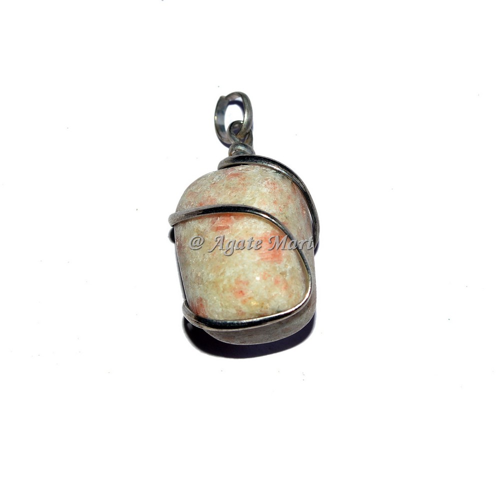 Shop online for Sunstone Wire Wrap Tumbled Pendant at affordable prices. It gently increases the energy of the sacral chakra. It helps with decision making and can boost creativity. Physically it is beneficial for the lungs, heart, adrenal glands and urogenital system. Order online for Sunstone Wire Wrap Tumbled Pendant at wholesale prices.