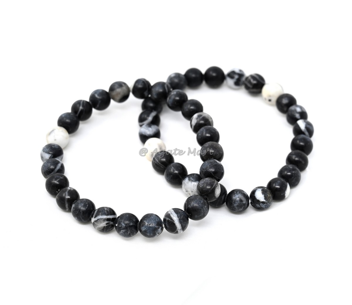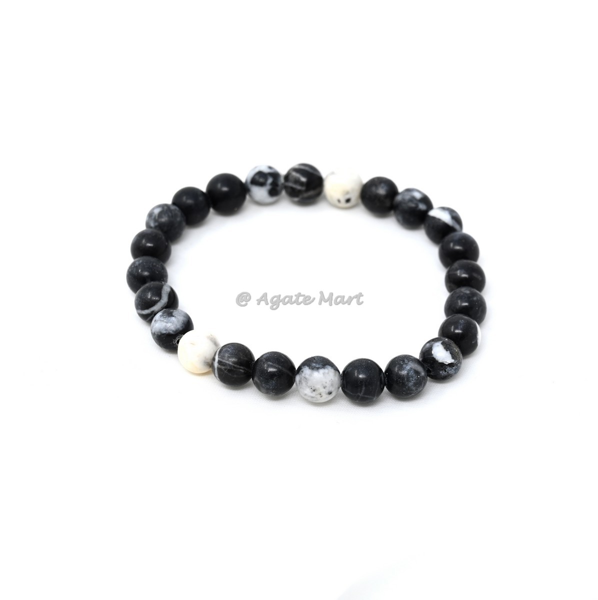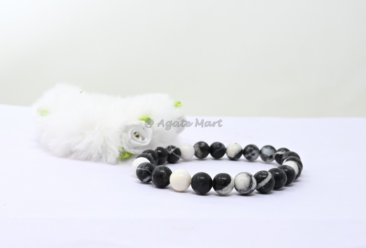 Unique patterns with our Zebra Jasper Bracelet. This stunning bracelet is crafted from zebra jasper, known for its grounding and stabilizing properties. Zebra jasper is a powerful stone that helps to promote balance and harmony, making it an ideal choice for those seeking inner peace and stability. Each bead is carefully selected to ensure maximum effectiveness. This bracelet is perfect for those looking for a unique and stylish accessory. Ideal for wholesale buyers looking for high-quality, unique gemstone jewelry, this bracelet is a must-have addition to any inventory. Available in bulk for great savings, making it an excellent choice for retailers and resellers. Shop at Agate Mart today and add this beautiful zebra jasper bracelet to your collection.