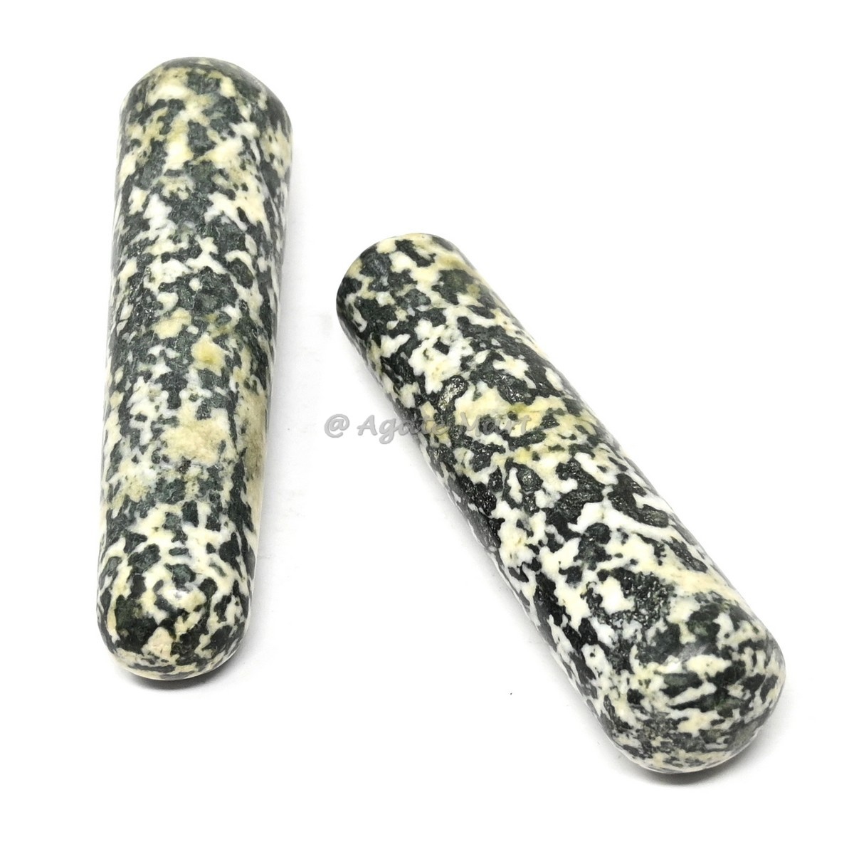Zebra Jasper, with its striking black and white patterns, is known as a grounding stone that promotes balance and calmness. The Zebra Jasper Massage Wand is ideal for aligning energies and stabilizing emotions, making it an excellent choice for reducing anxiety and stress. Use it in massage therapy to bring harmony to the body and mind, fostering resilience and balance.